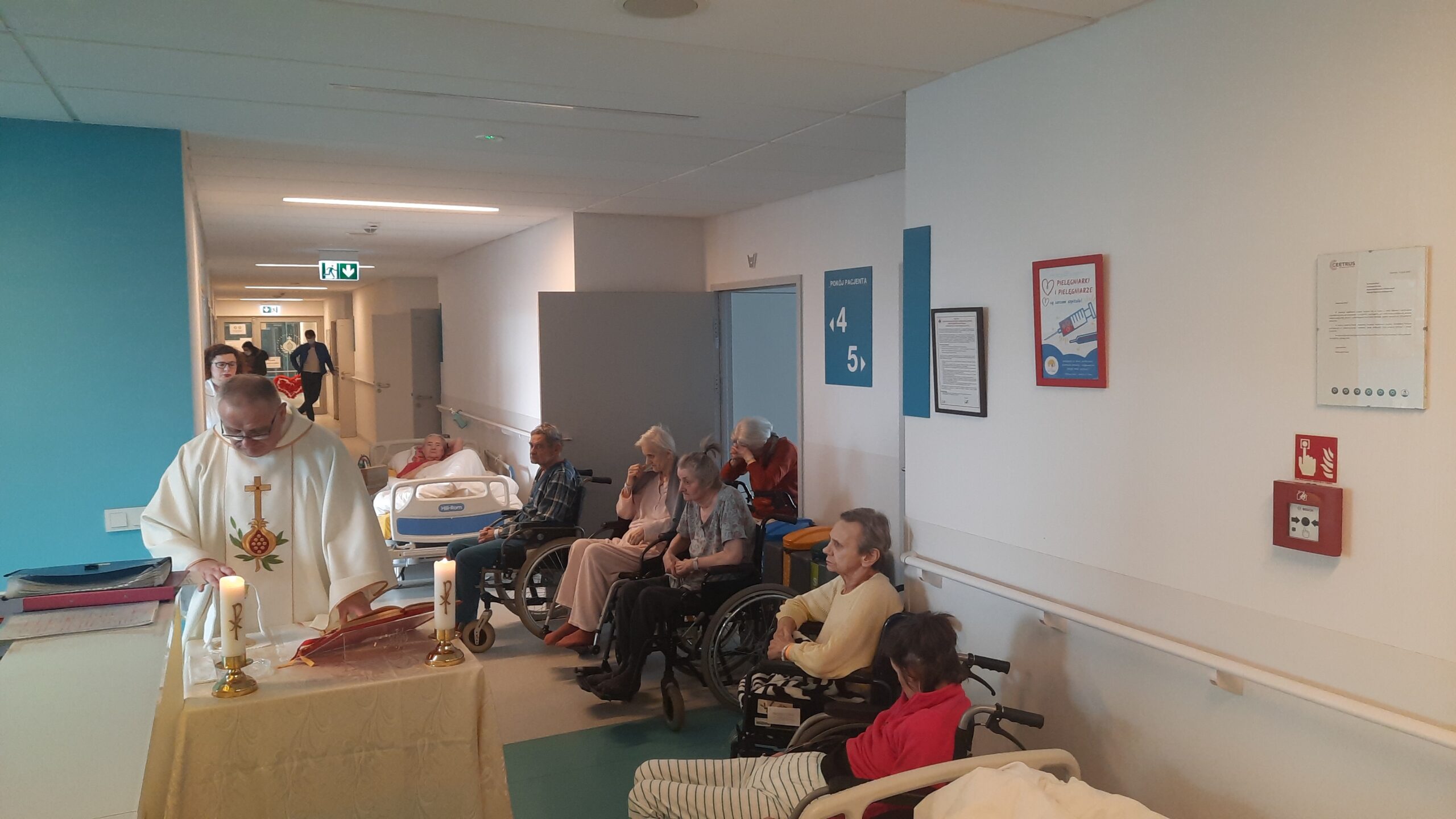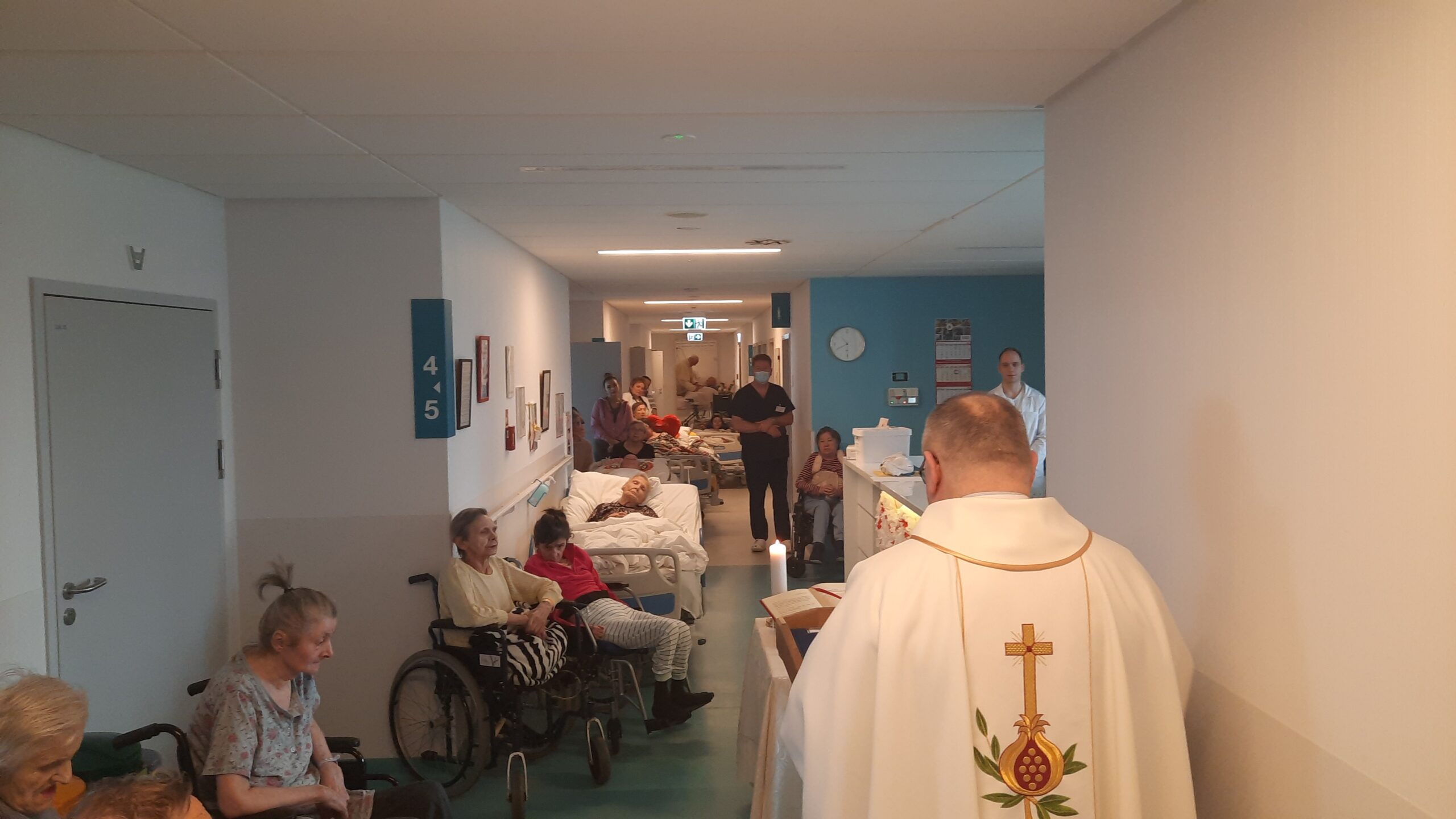 Wspólne świętowanie kontynuowaliśmy pysznym obiadem. Z racji przypadającego 8 marca Dnia Kobiet, Przeor z bratem Jerzym przeszli po oddziałach z życzeniami i słodkościami. Następnego dnia o godz. 10:30 Mszę Świętą z racji uroczystości św. Jana Bożego odprawiono na korytarzu Oddziału Paliatywnego przy ul. Wita Stwosza w Katowicach. Uroczystości przewodniczył o. Mirosław Skrzydło – kapelan, a lokalizacja pozwoliła, że mogło uczestniczyć 15 chorych na łóżkach i wózkach oraz cały personel. /br. Sadok/