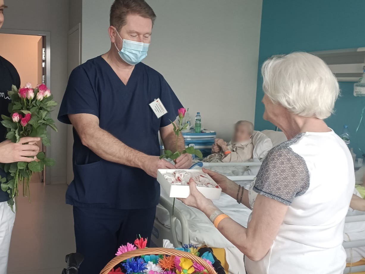 Na oddziale medycyny paliatywnej przygotowania do święta kobiet trwały już od dłuższego czasu. Pacjenci w ramach zajęć terapii grupowej przygotowywali wazoniki i kwiatowe niespodzianki z bibuły dla naszych pacjentek. 8 marca nasi niezastąpieni lekarze wręczyli każdej pacjentce kwiatowe niespodzianki i złożyli życzenia od serca. /M. Kalemba/