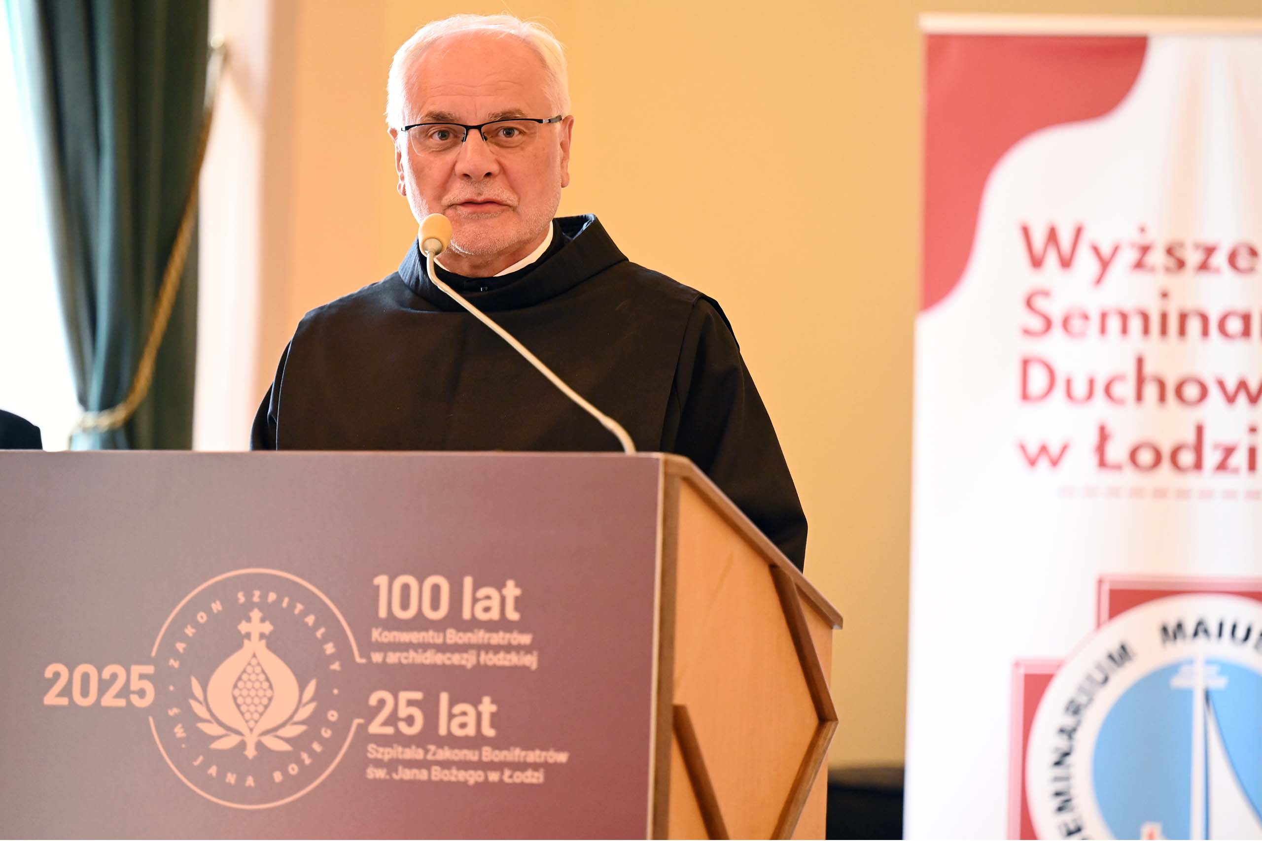 W części oficjalnej Prowincjał Zakonu Bonifratrów, br. Franciszek Salezy Chmiel, podkreślał, że obecność bonifratrów w Łodzi od samego początku była odpowiedzią na potrzebę niesienia pomocy ubogim, chorym i potrzebującym. „Wzorem świętego Jana Bożego, który ujrzał, że człowiek stanowi nierozerwaną jedność duszy i ciała, staramy się nieść pomoc w sposób całościowy, obejmując zarówno wymiary cielesny, jak i duchowy” – mówił. Przypomniał także trudne doświadczenia, które zapisały się na kartach bonifraterskiej historii, kiedy szpital został odebrany Zakonowi, zaznaczając, że duch opieki bonifraterskiej pozostał wtedy niezmienny i powrócił wraz z odzyskaniem Szpitala w 2000 roku. „Ten jubileusz to nie tylko powód do świętowania, to także wezwanie, abyśmy nie ustawali w budowaniu wspólnoty, w której Ewangelia przekłada się na czyny miłosierdzia, gdzie szpital jest nie tylko miejscem leczenia, ale przystanią dla duszy poprzez posługę bonifraterską” – podkreślił.
