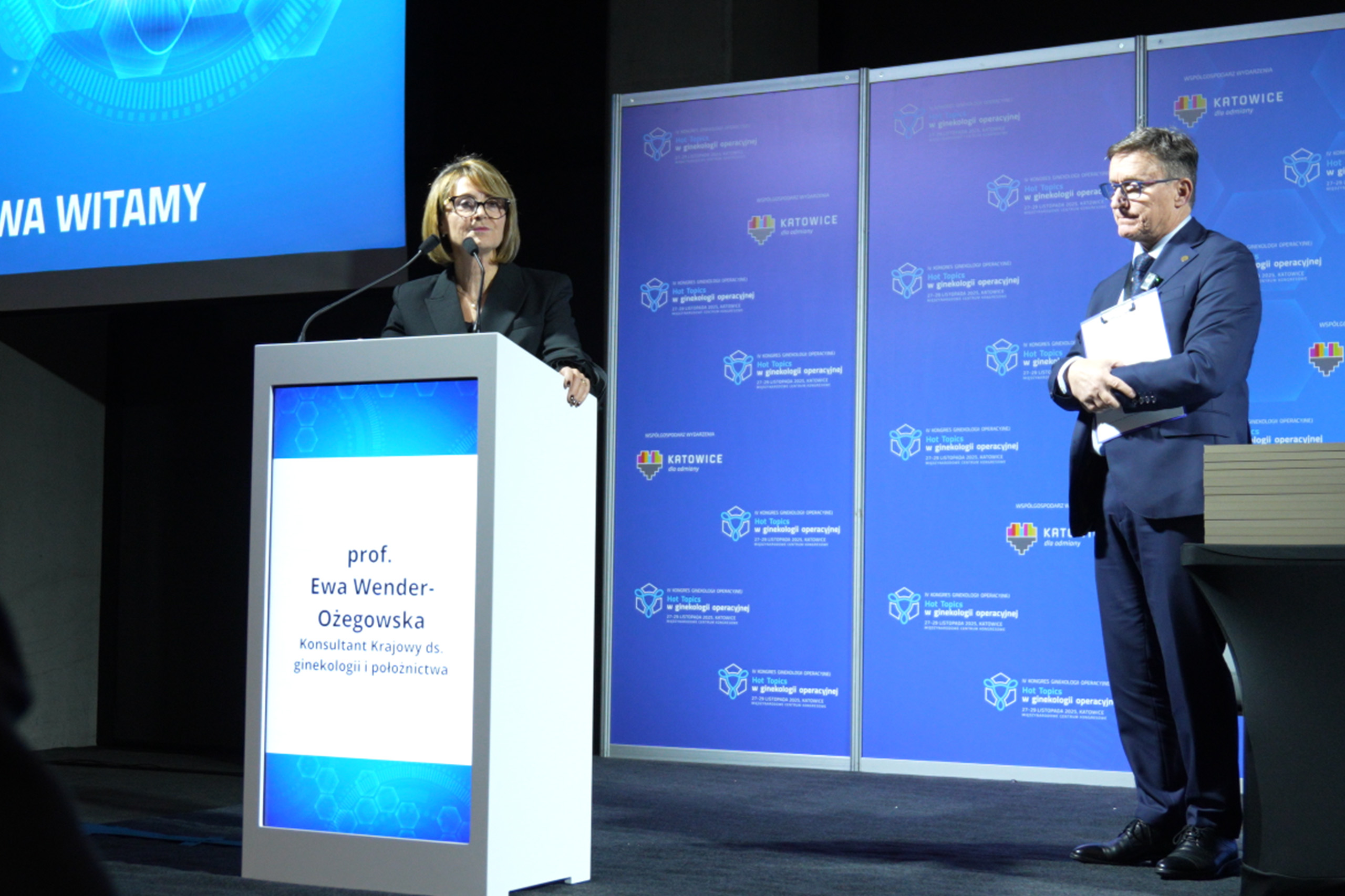 Na wyzwania, które stoją przed ginekologią, zwracała uwagę prof. Ewa Wender-Ożegowska, krajowa konsultant w dziedzinie ginekologii. „Europa, w tym również Polska, doświadcza dramatycznego spadku liczby porodów. W minionym roku mieliśmy najmniej urodzeń od czasów zakończenia II wojny światowej. To oznacza, że każda ciąża nabiera ogromnej wartości — medycznej, emocjonalnej i społecznej. Jednocześnie rośnie odsetek ciąż obciążonych, rośnie liczba kobiet po 35. roku życia, a w położnictwie mamy nawet 60% cięć cesarskich w niektórych ośrodkach. To sprawia, że chirurgiczne umiejętności ginekologów stają się fundamentem bezpieczeństwa kobiet. Ginekologia operacyjna ma dziś znaczenie większe niż kiedykolwiek wcześniej” – mówiła. Podkreślała też wagę wyzwań związanych z leczeniem endometriozą oraz starzeniem się społeczeństwa. Doceniając rolę technologii w rozwijaniu opieki medycznej nad kobietami, przypomniała jednak o tym, co najważniejsze. „Roboty chirurgiczne, chirurgia laparoskopowa, sztuczna inteligencja, symulatory – wszystkie te narzędzia rewolucjonizują nasze możliwości. Ale żadna technologia nie zastąpi najważniejszego elementu: lekarza” – zaznaczyła.