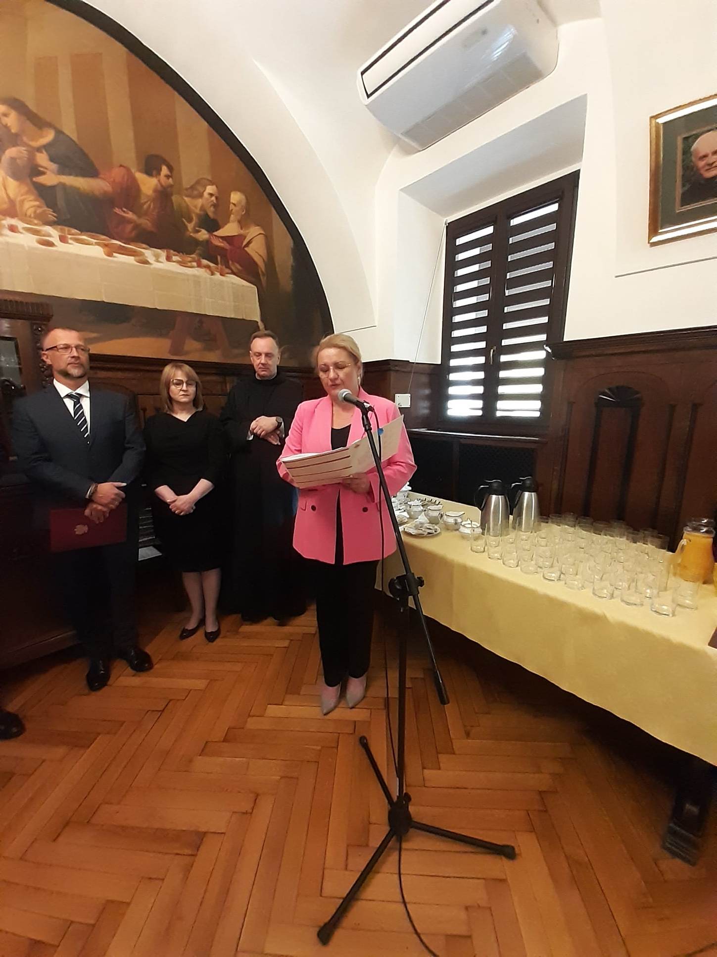 w imieniu Pracowników szpitala przedstawiła charakterystykę i dokonania Pani Prezes w bonifraterskim dziele, jakim jest szpital krakowski.